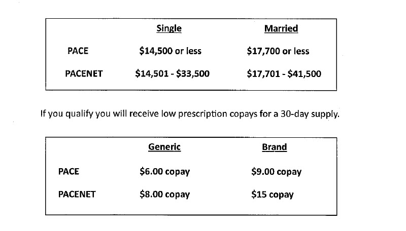 If you have another plan other than PACE or PACENET and the copay is less, you will be charged the lesser copay. If you think you may qualify for this great program, you can call PACE directly at 1-800-225-7223 and they will be able to assist you.